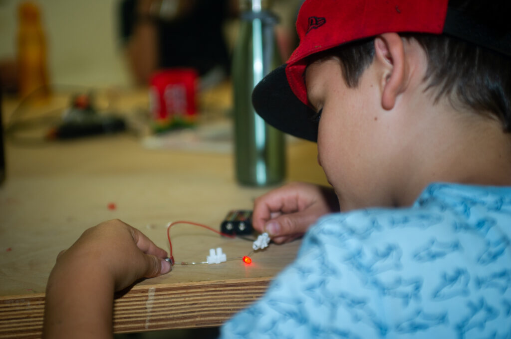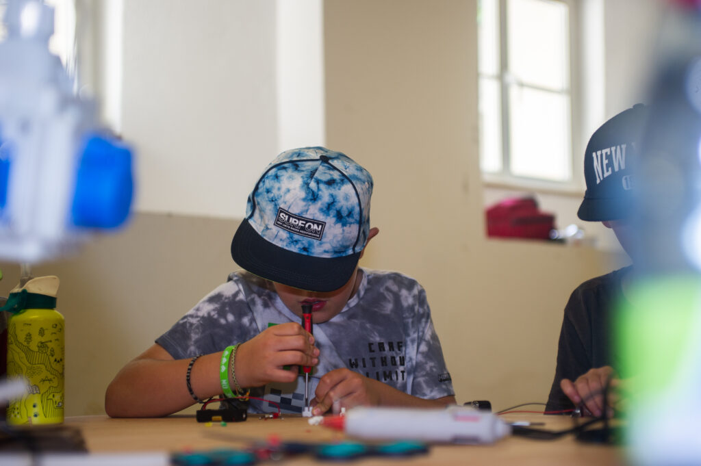Le camp intitulé « Sur les traces de Géo Trouvetou (Daniel Düsentrieb) » a permis aux enfants de 8 à 12 ans de participer à diverses activités et de découvrir différents ateliers également proposés dans le Makerspace, tels que créer son propre robot ou t-shirt ou jouer au jeu « Wastebusters ».