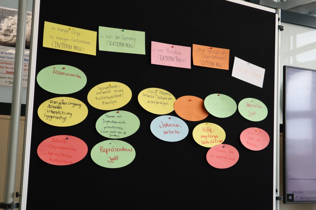 La deuxième édition des Rendez-vous du cadre de référence pour les professionnels du secteur de la jeunesse a eu lieu le mercredi 18 octobre au Forum Geesseknäppchen. Cette rencontre est organisée par le Service national de la jeunesse en collaboration avec la Direction Générale du secteur de la Jeunesse du Ministère de l’éducation nationale, de la jeunesse et de l’enfance. Environ 40 professionnels issus de maisons de jeunes, de services pour jeunes et d’organisations pour jeunes ont saisi l’occasion de discuter sur leurs différents rôles en tant que pédagogues : leur rôle vis-à-vis du jeune, de leur équipe et des personnes, services et organisations externes.