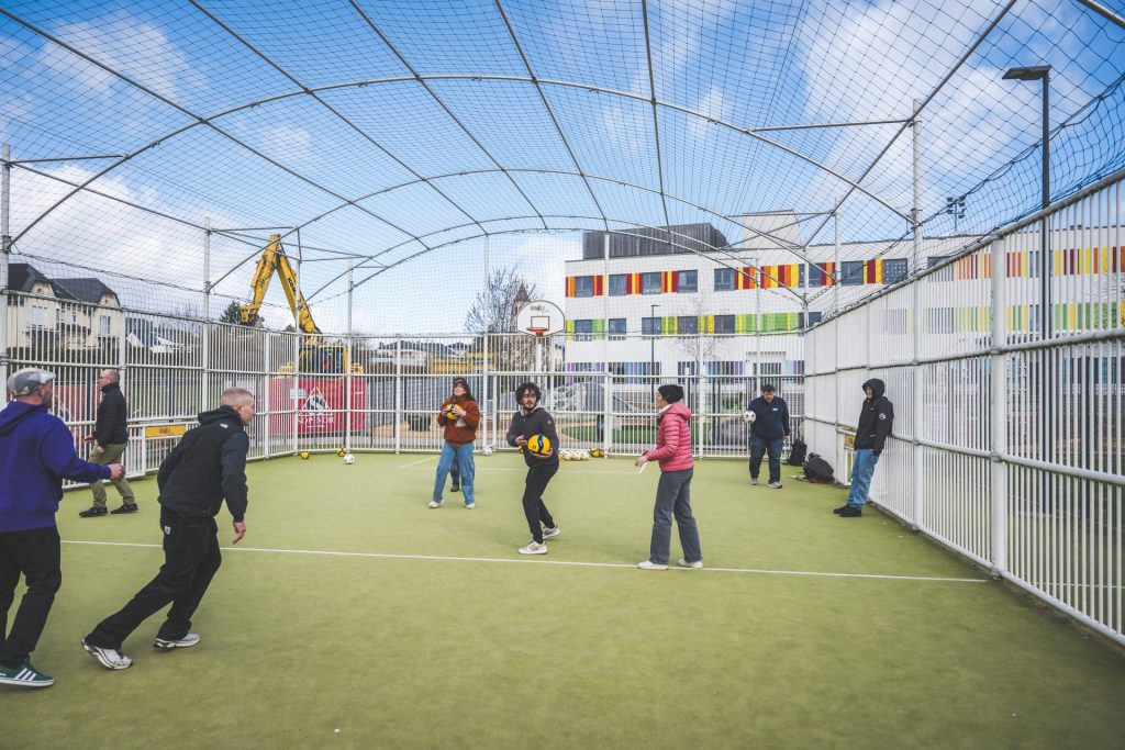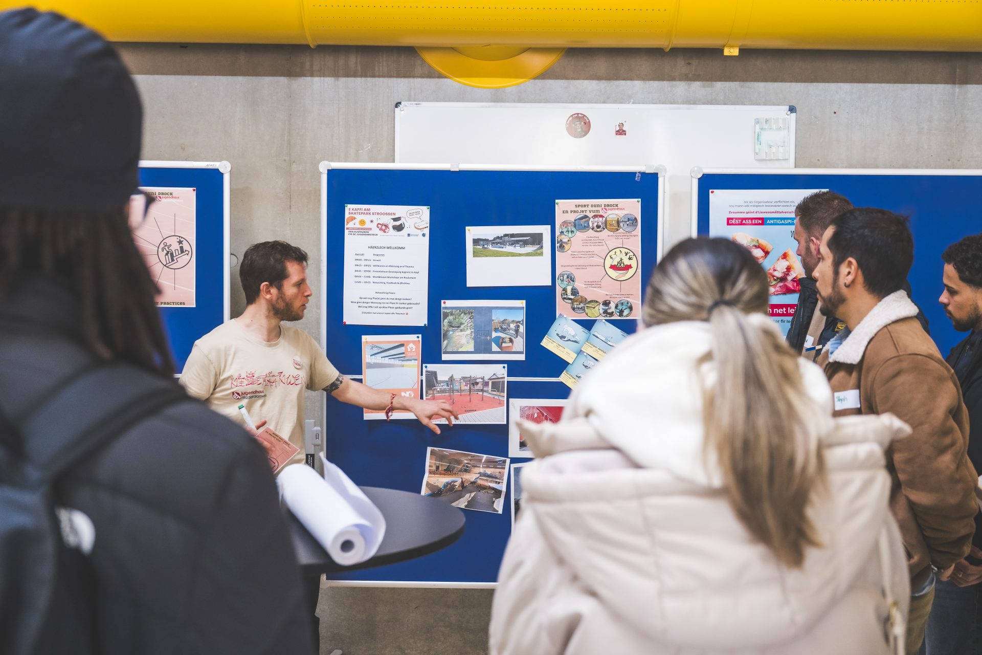 Le « Kaffi am Skatepark Stroossen » s’articulait autour de la thématique “URBAN SPORTS AND NETWORKING”, dont l’idée principale était la promotion d’activités sportives à l’extérieur. Dans cette optique, différents acteurs avaient été invités à présenter leur offre. À travers des ateliers et des moments d’échange, ils ont partagé leurs pratiques, mis en avant, les différentes manières d’utiliser ces infrastructures et ont exploré des pistes pour encourager les jeunes à se rencontrer et à être actifs.