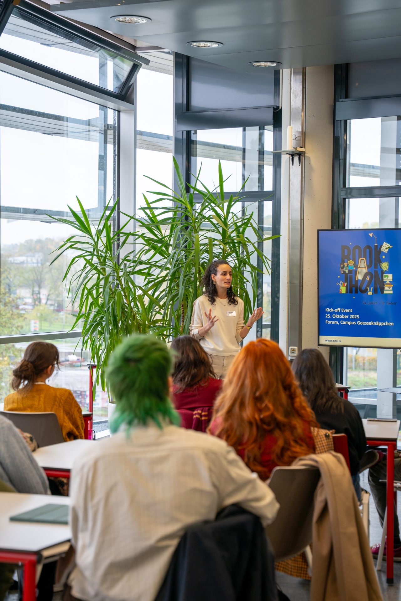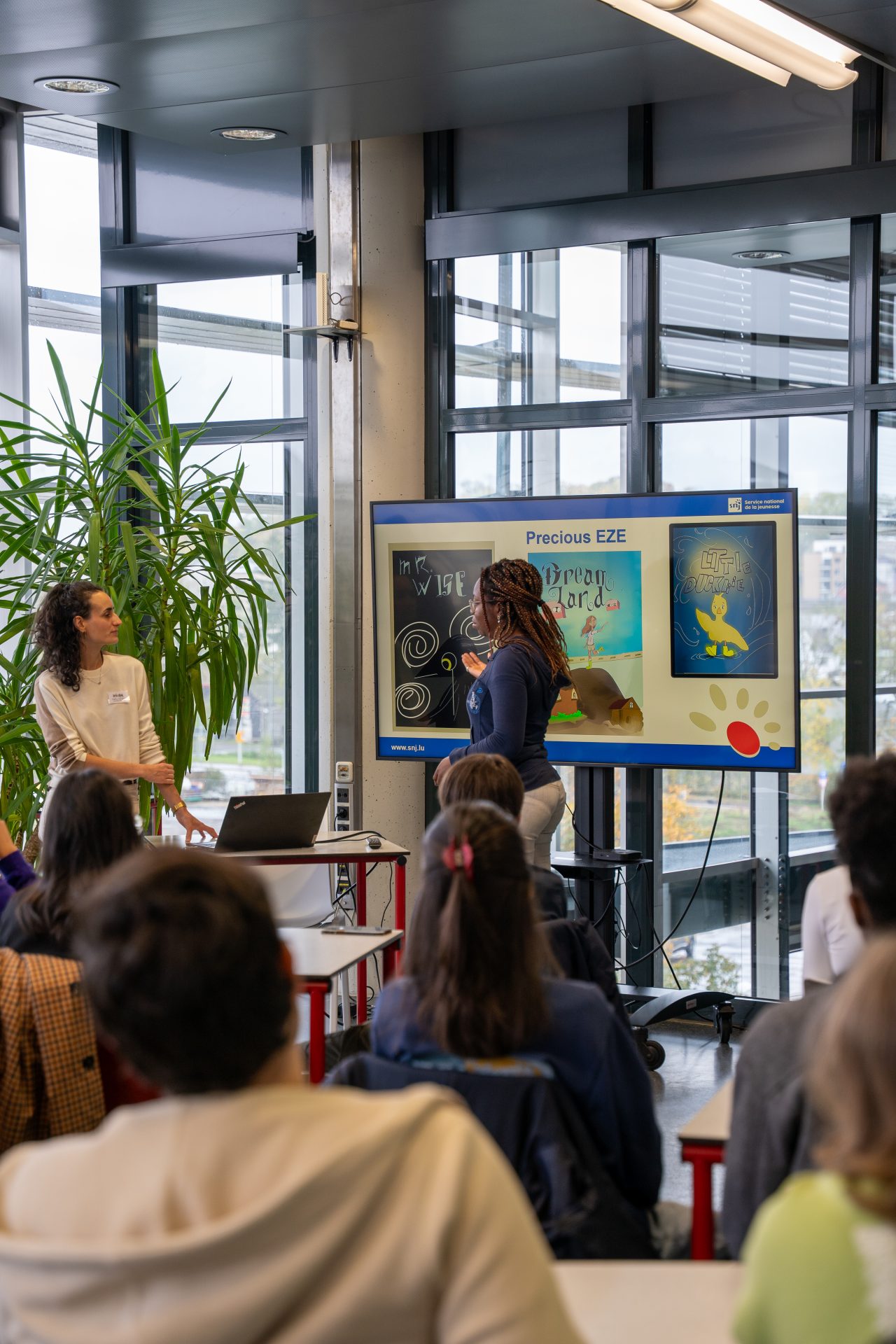 Le samedi 25 octobre, a marqué le début de la troisième édition du « BookAthon – Vu Jonker fir Kanner ». Cet événement Kick-Off, organisé par le Service national de la jeunesse (SNJ), a rassemblé 10 jeunes auteurs et autrices, 10 illustrateurs et illustratrices, ainsi que 10 graphistes âgés de 15 à 29 ans au Forum Geesseknäppchen. Encadrés par des professionnels, ces jeunes ont participé à des workshops où l’accent a été mis non seulement sur la présentation du projet, mais aussi sur l’élaboration et le perfectionnement des idées qu’ils ont apportées.