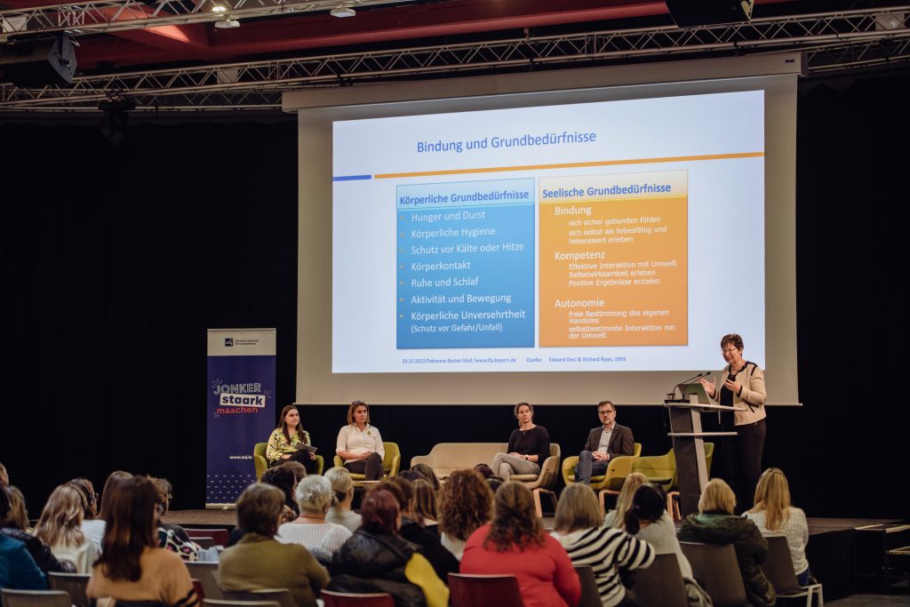 Lors de la première partie de la conférence, les participants ont pu suivre l’exposé de Prof. Dr. Fabienne Becker-Stoll, professeure à l’université Ludwig Maximilian de Munich, sur la théorie de l’attachement avec les chances et les défis que cela représente pour les assistants parentaux. Elle a accentué sa présentation sur les besoins de base des enfants, les phases du développement de l’attachement ainsi que sur le rôle de la sensibilité, de l’exploration et de la séparation. Cette présentation a été suivie d’une séance de questions ouvertes.