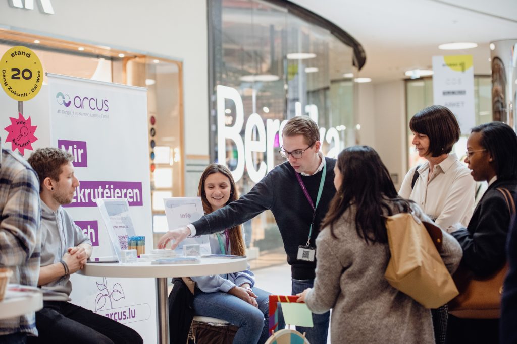L’événement, qui a été accueilli pour une première fois dans les locaux du Shopping Center Cloche d’or, a attiré plus de 1.000 visiteurs. Sur 60 stands très diversifiés au niveau des branches (Santé, artisanat, commerce, transport, bénévolat, …), les jeunes ainsi que leurs parents ont pu s’informer sur les différentes opportunités, que ce soit en tant qu’étudiant, apprenti, jeune professionnel ou volontaire. Au-delà les jeunes ont pu participer à quatre workshops différents (Stylisme, Coiffure, Esthétique et Photo CV) afin de recevoir des conseils pratiques pour leur prochain entretien d’embauche.