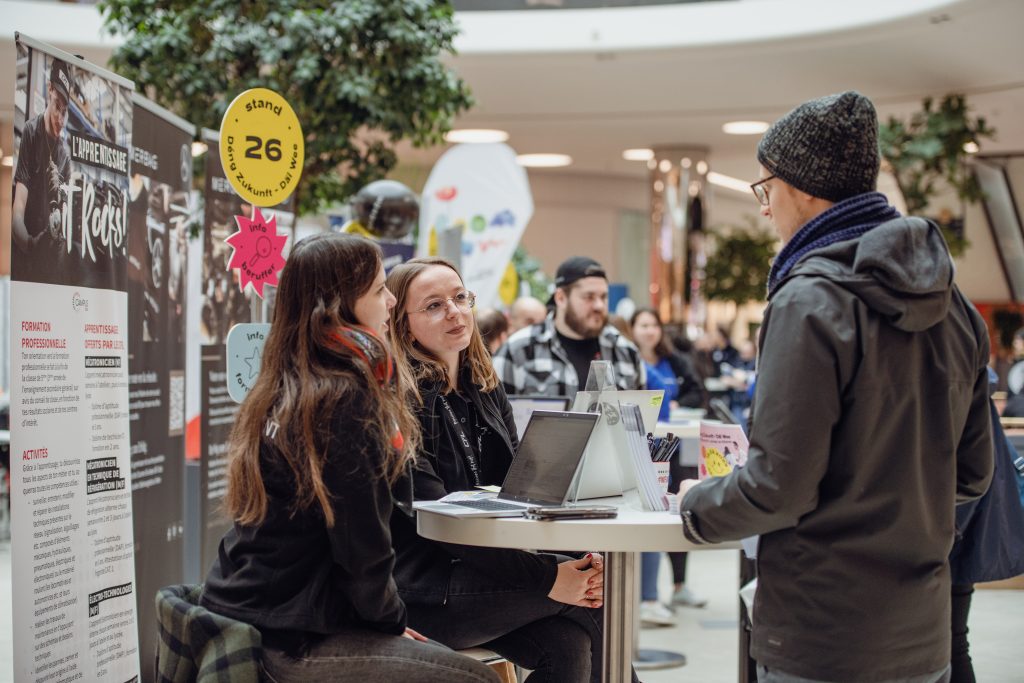 Ce mercredi, 15 février, a eu lieu la 7ième édition de la foire « Deng Zukunft, däi Wee », organisée par le Service national de la Jeunesse (SNJ) et le Point Info Jeunes Esch (PIJ) – en partenariat avec la Ville de Luxembourg.