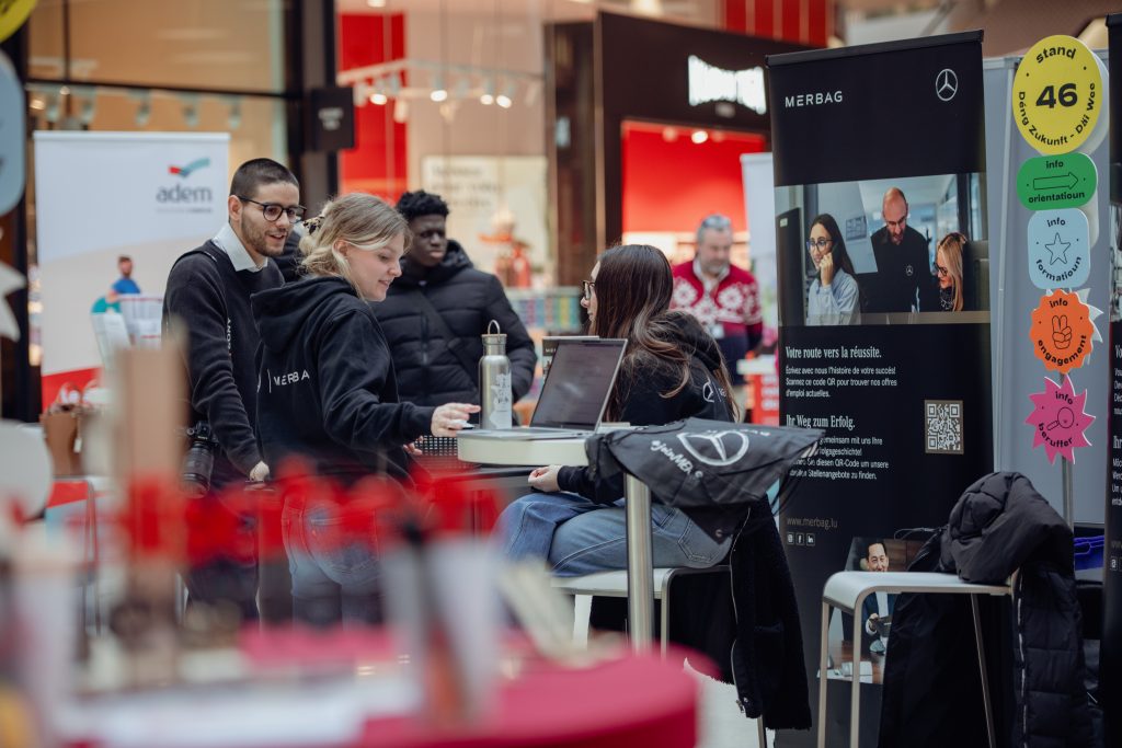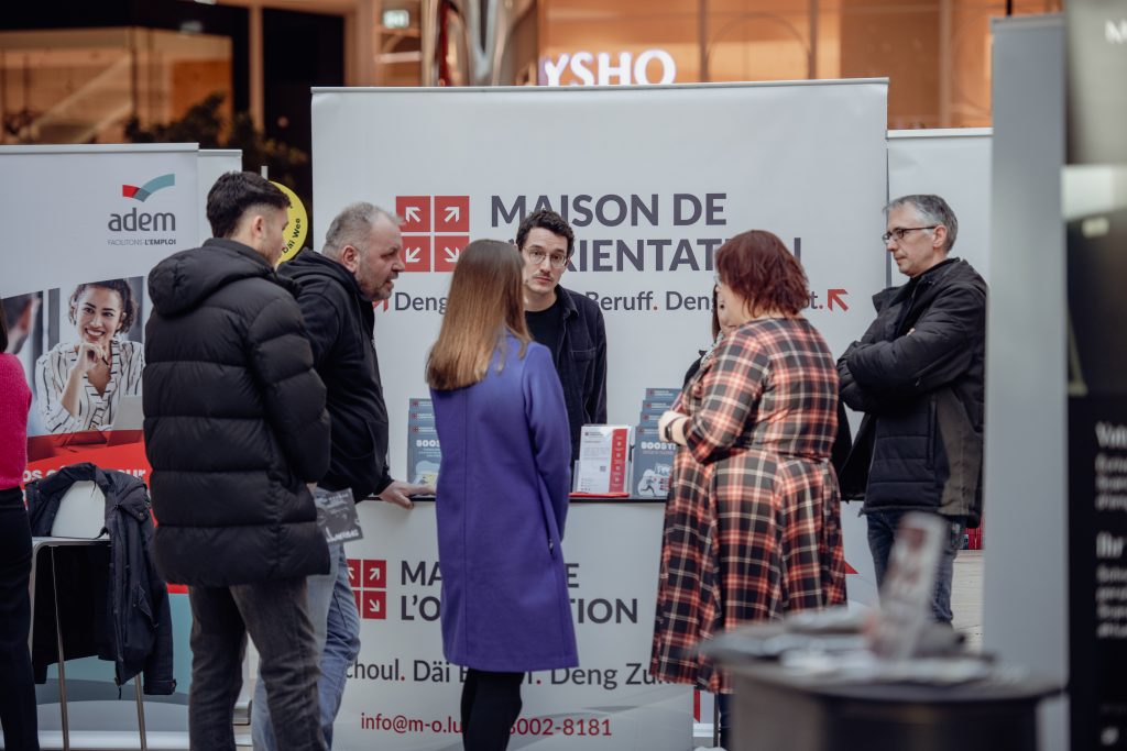 Plus de 1000 visiteurs étaient au rendez-vous au Cloche d’Or Shopping Center afin de s’informer auprès de 53 exposants. Métiers, formations, études ou service volontaire, les jeunes avaient l’embarras du choix et ont ainsi pu découvrir de nombreuses opportunités qui s’offrent à eux afin de planifier leur prochaine étape. À côté des stands d’information, les jeunes ont pu participer à cinq workshops (stylisme, coiffure, esthétique, photo et conseil CV et Vidéo CV) afin de recevoir des conseils pratiques pour leur prochain entretien d’embauche.