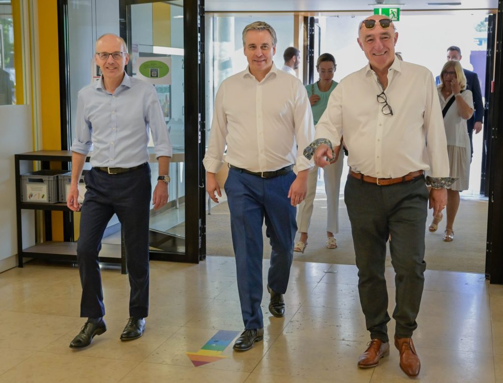 Ensemble avec les élèves d’une classe du cycle 3.2. à Strassen, le Premier Ministre Luc Frieden et le ministre de l’Éducation nationale, de l’Enfance et de la Jeunesse Claude Meisch ont suivi, ce mercredi 2 juillet, la formation de base “Ein Sprung ins Netz” de BEE SECURE qui sensibilise aux opportunités, mais également aux dangers que l’Internet peut présenter.