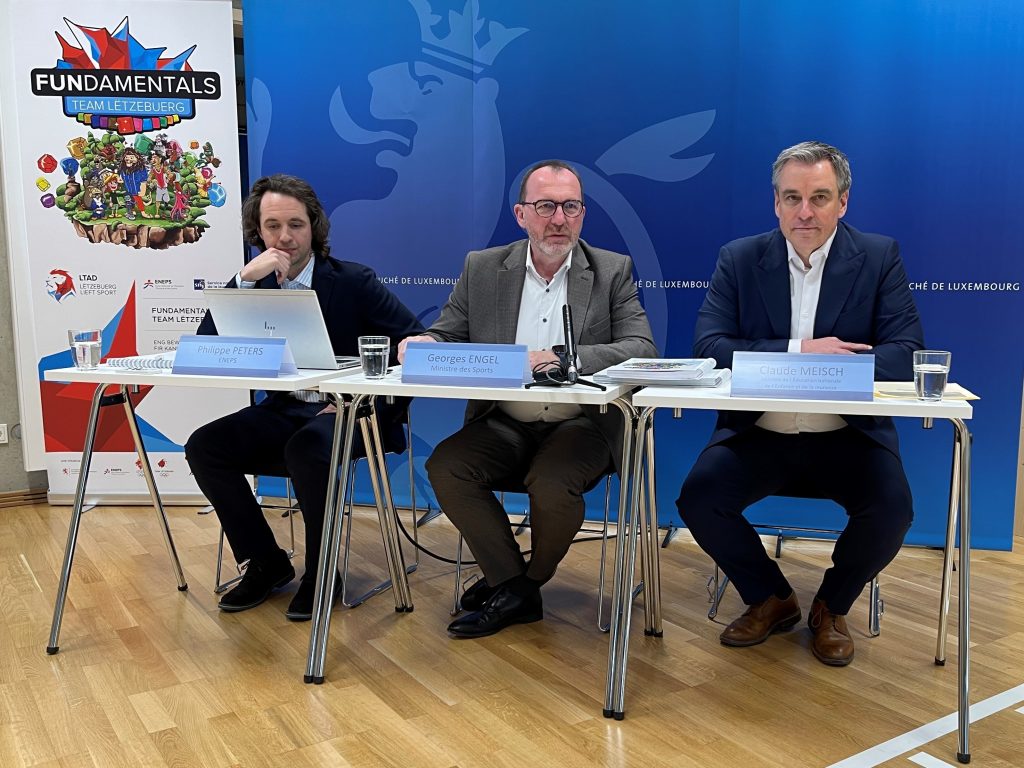 Lors de la conférence de presse hier, le ministre des Sports, Georges Engel, et le ministre de l’Éducation nationale, de l’Enfance et de la Jeunesse, Claude Meisch ont souligné l’importance du mouvement pour le développement de nombreuses compétences : l’effort physique, l’esprit d’équipe, la tolérance et le respect, la confiance en soi. Promouvoir la motricité et donc la santé de tous les enfants relève d’un effort commun qui engage les acteurs de l’école, de l’éducation non formelle et des activités de loisir.