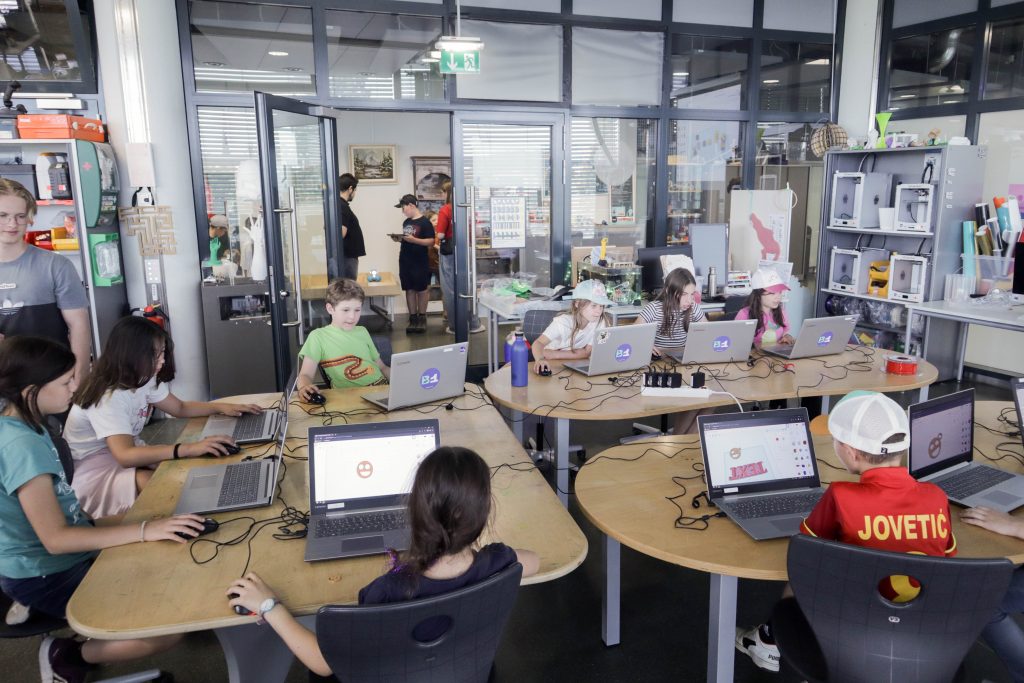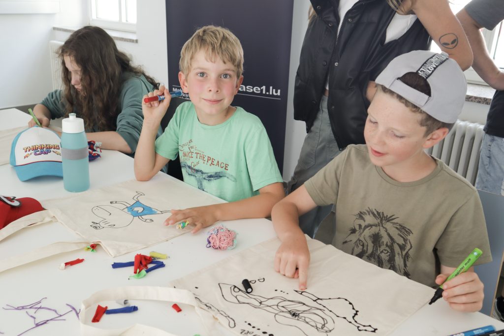 Lors du makercamp, qui s’est déroulé du 16 au 20 juillet 2023, 21 jeunes de 8 à 12 ans ont pu développer leur créativité dans une ambiance décontractée. Le camp a permis aux participants de découvrir différentes techniques, sciences, savoir-faire manuels et technologies et de les appliquer. Pendant la première journée, ils ont activement expérimenté la physique en construisant des circuits de billes en bois et en explorant le monde de l’électronique en fabriquant une lumière de camp. Ils ont aussi créé des vide-poches en recyclant des vieux T-shirts. Passer la nuit dans des grandes tentes dans notre centre de jeunesse Marienthal était une aventure en plus pour les jeunes. Mercredi, le groupe s’est rendu en ville pour explorer le makerspace du SNJ au Geesenknäppchen, où ils ont pu programmer des robots et créer eux-mêmes des designs 3D. La fin du makercamp s’est déroulé à Marienthal, où les enfants ont réalisé un beau T-shirt en sérigraphie. Les animateurs du Groupe Animateur et l’équipe du Makerspace Base 1 du SNJ ont guidé les participants tout au long du camp. Afin de se souvenir de cette expérience unique, les jeunes ont pu ramener leurs créations chez eux.
