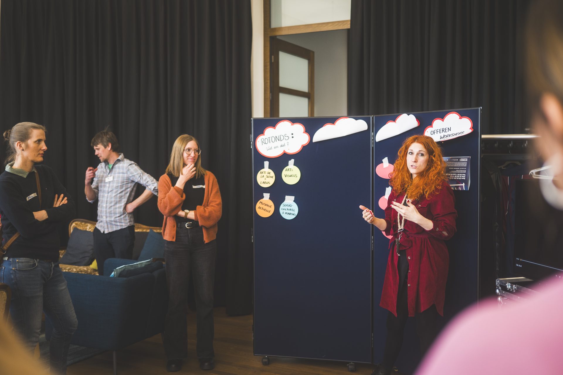 Le contenu de l’exposition et les réflexions des jeunes artistes ont été présentés. Le Centre for Childhood and Youth Research (CCY) de l’Université du Luxembourg, qui a également contribué à cette exposition, a fourni des explications et statistiques nationales au sujet de la culture des jeunes. Dans les ateliers qui suivaient, tenus par différents acteurs du domaine de la culture, les Rotondes, Cultur’all et une représentante du Mierscher Theater ont présenté leurs offres pour jeunes.
