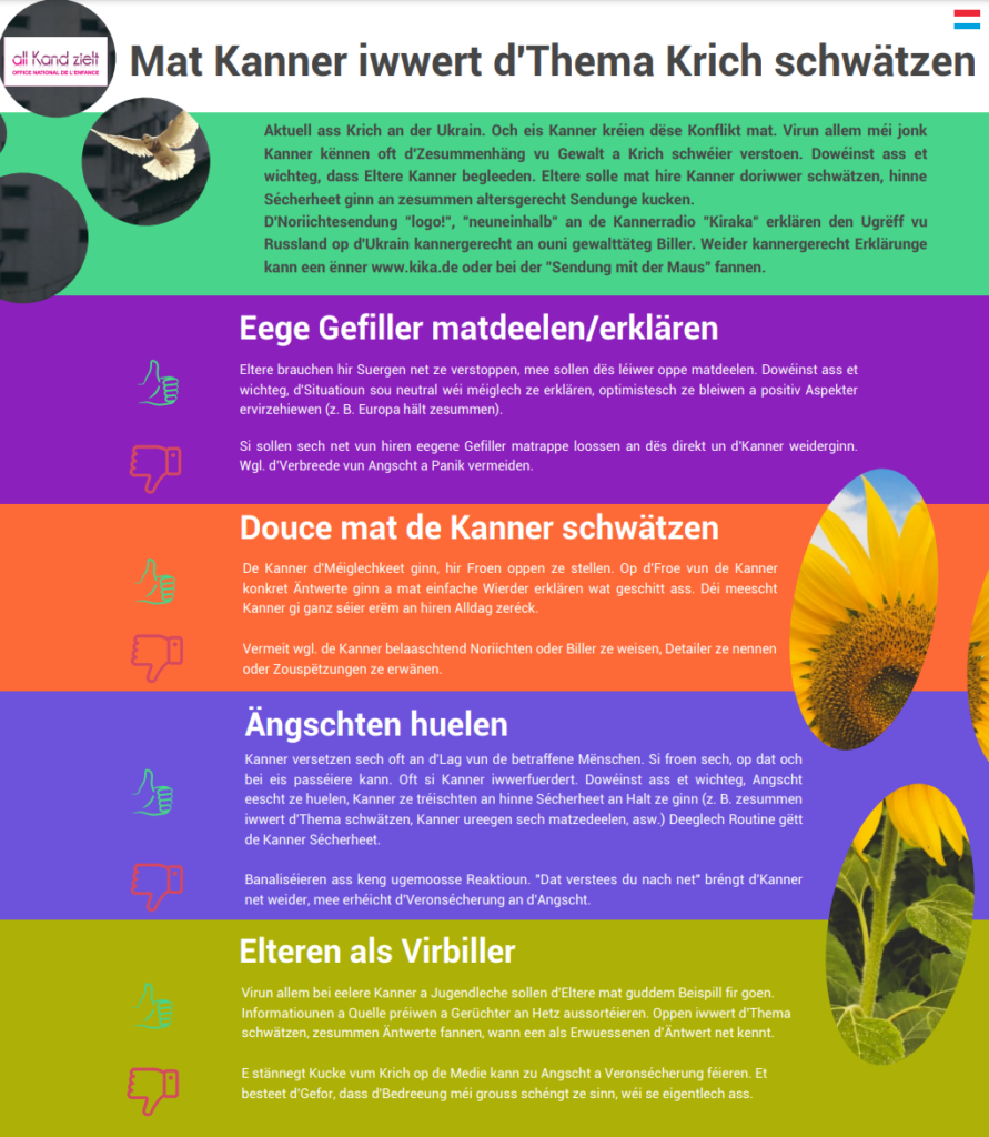 « Comment parler de la guerre à mes enfants ? » C’est une question que se posent de nombreux parents ces derniers jours. Pour les accompagner dans ce sujet difficile, le ministère de l’Éducation nationale, de l’Enfance et de la Jeunesse, en collaboration avec des psychologues pour enfants, a créé un dépliant en trois langues.