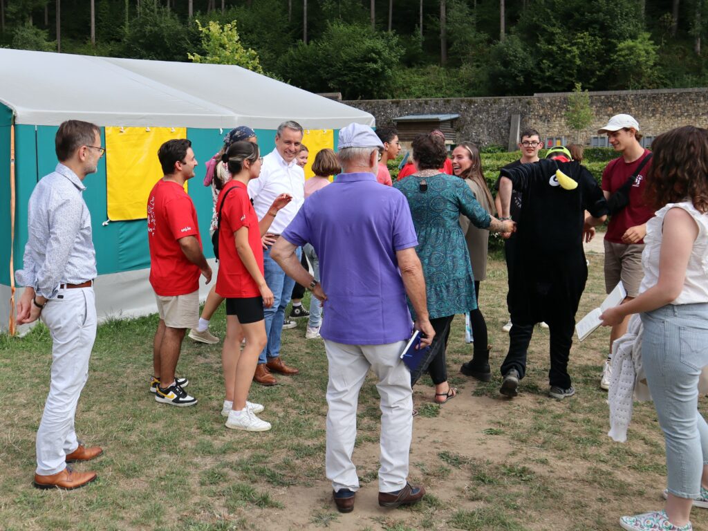 En date du 26 juillet 2022 le Ministre de l’Education nationale de l’Enfance et de la Jeunesse a visité le camp “Better together” qui se déroule du 23 au 29 juillet au Centre de Jeunesse Marienthal. Il s’agit d’une activité d’intégration, organisée par le Service national de la jeunesse, qui rassemble 18 jeunes de 14 à 18 ans (avec et sans besoins spécifiques) autour d’un programme bien varié. Le groupe séjourne en plein air dans des tentes sur le vaste site du centre de jeunesse.